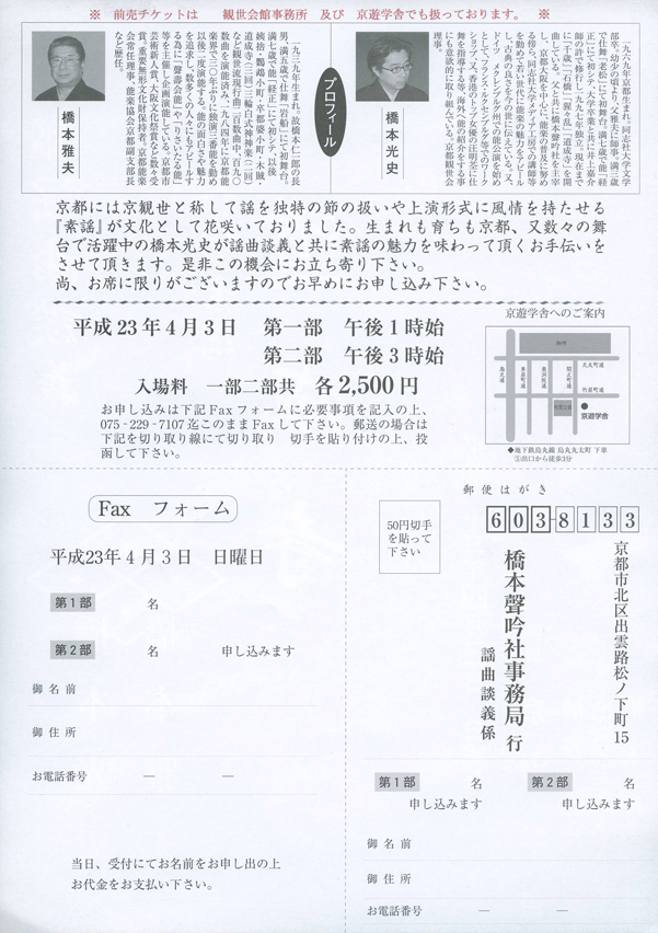 | 平成二十三年度 京都観世会例会 スケジュール |
