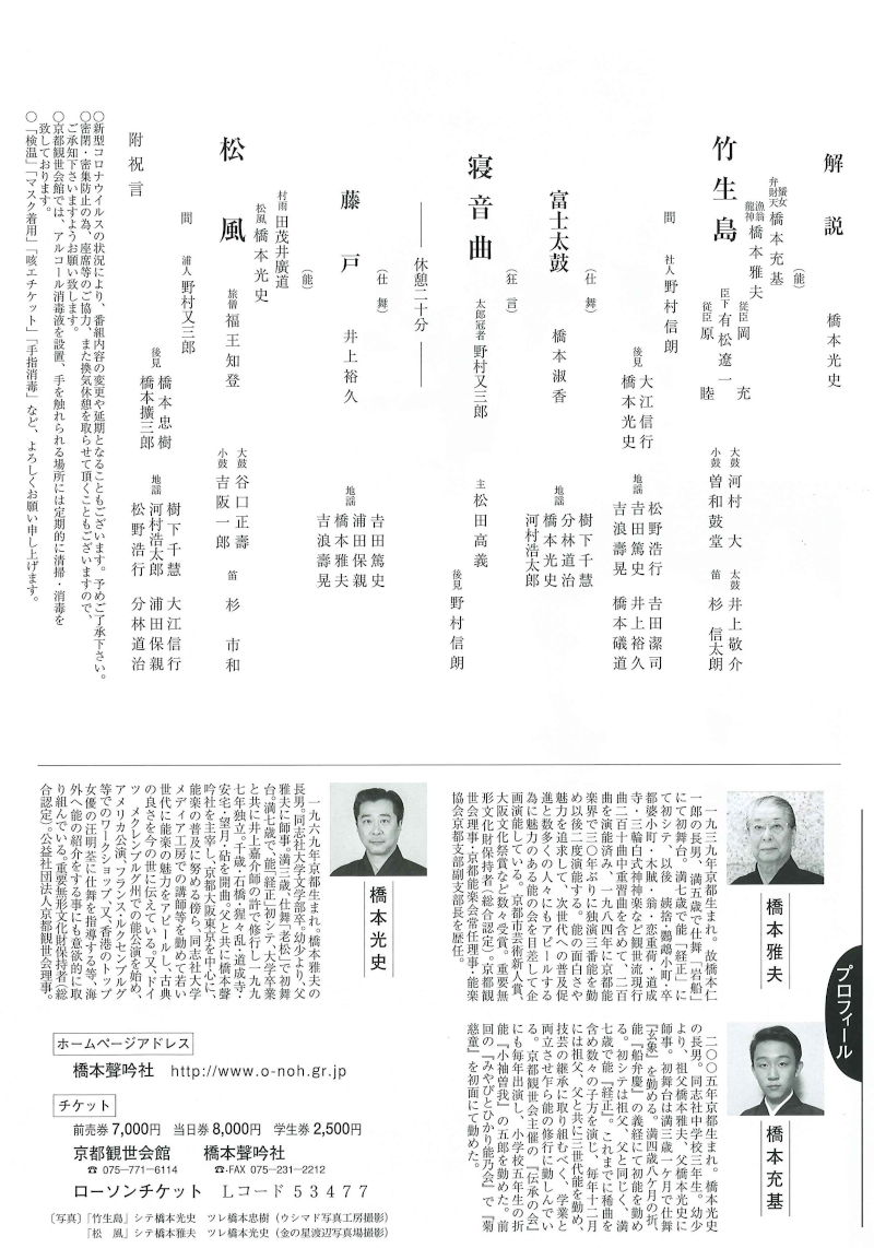 | 令和二年 京都観世会例会 スケジュール |